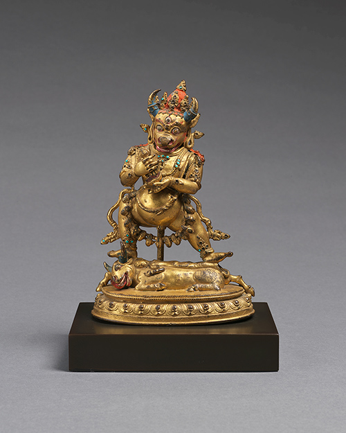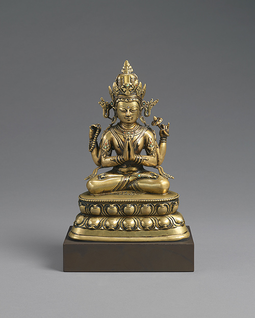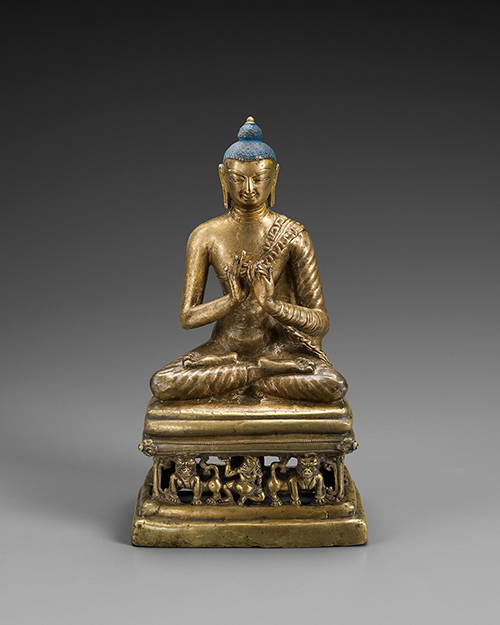 Copper Alloy, Solid Cast with Traces of Gilding and Blue Pigment